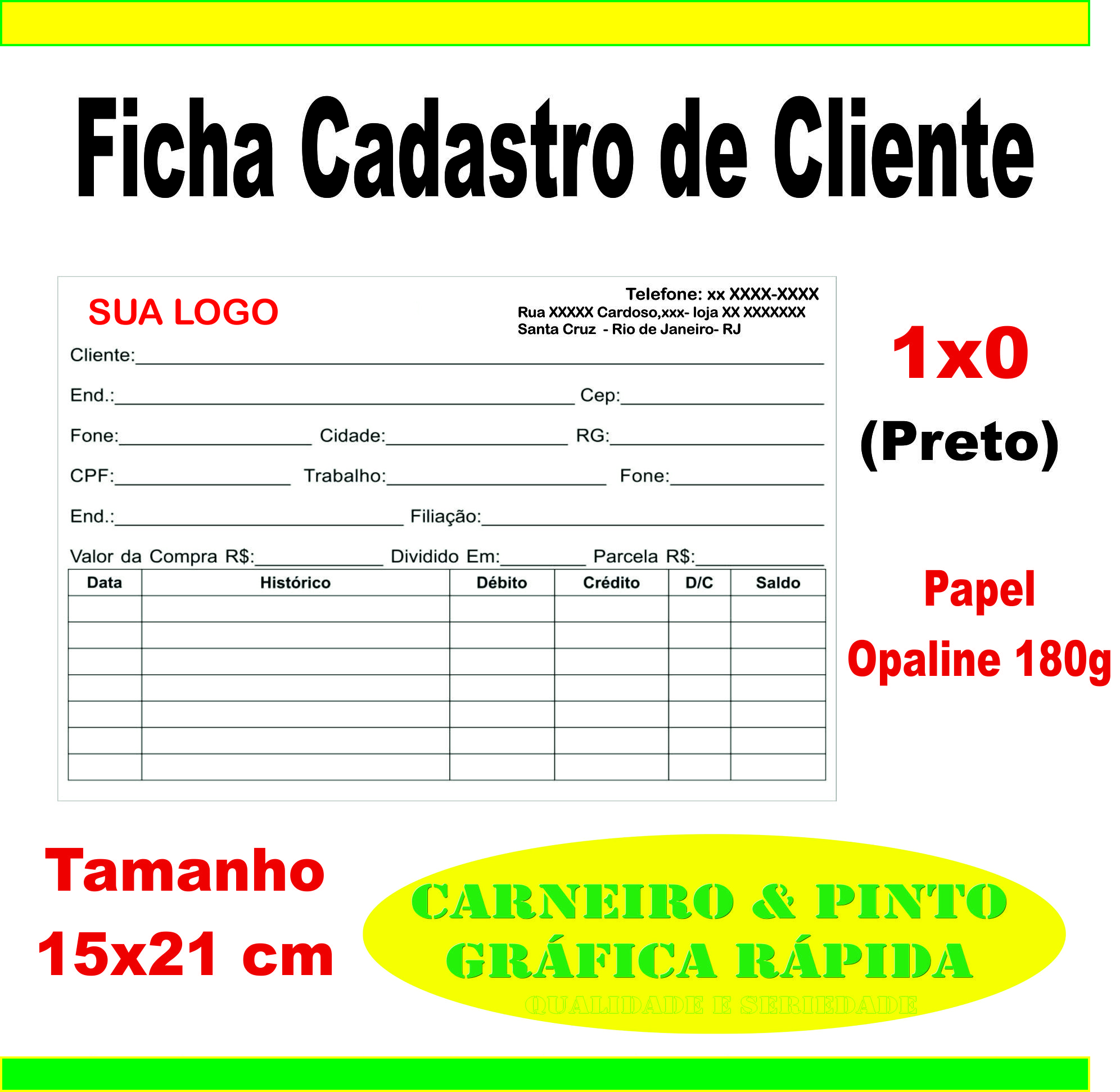 IMPRESSÃO COMO NO MODELO (TODA EM PRETO E BRANCO) SÓ COLOCAMOS SUA LOGO E DADOS.