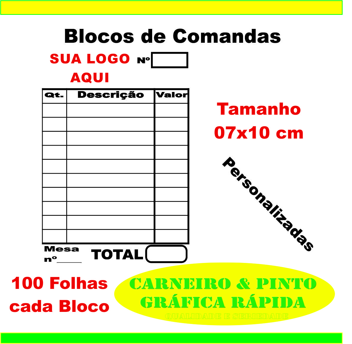 50 BLOCOS DE COMANDAS PERSONALIZADA